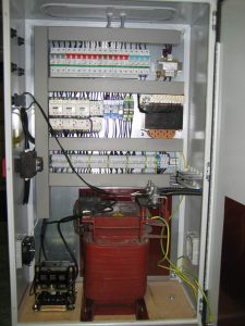 Rugógyártó gép vezérlésének elektromos tervezése, vezérlés elkészítése.