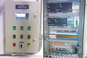 Úszómedence vízforgatás vezérlő berendezés elektromos tervezése, vezérlés elkészítése, felprogramozása SR programozható relé és ARRAY SH-300 HMI felhasználásával.
